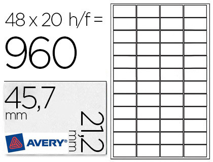 Étiquette adhésive avery enlevable laser jet d'encre 45.7x21.2mm écologique boîte 1200 unités