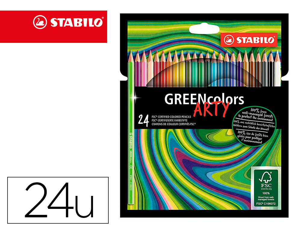 CRAYON DE COULEUR STABILO AQUACOLOR ARTY AQUARELLABLE   MINE SOLIDE 2,8MM ETUI CARTON 24 UNITES