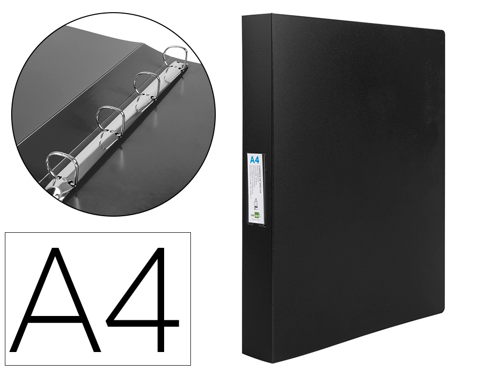 Classeur kangourou liderpapel 2 anneaux en d 25mm polypropylene 283x320mm document a4 coloris noir