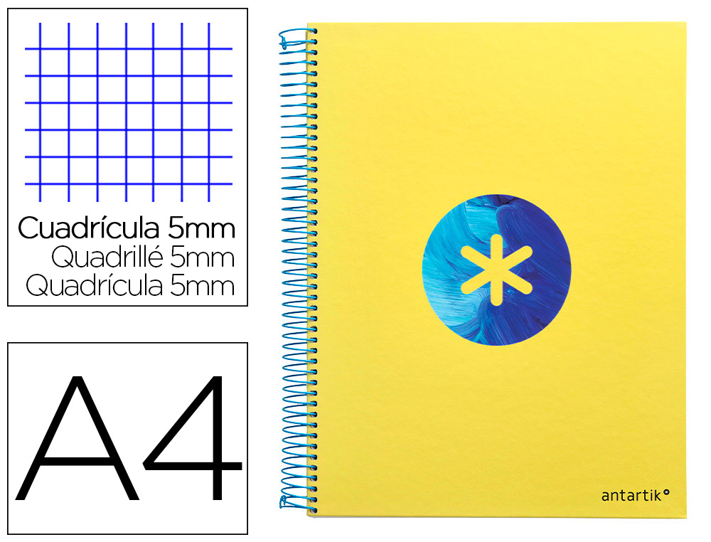 Cahier spirale antartik a4 160p 90g couverture rembordee 5x5mm 4 trous 1 bande coloris jaune