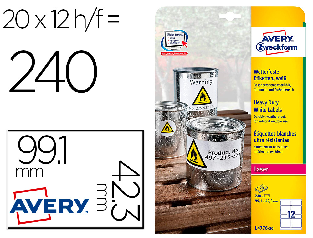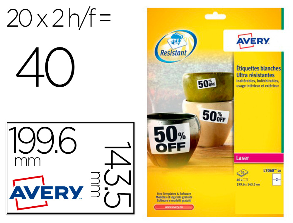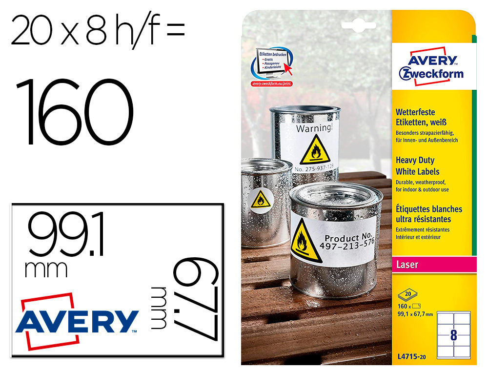 Etiquette avery ultra resistantes polyester laser blanc 99,1 x 139mm boite de 80