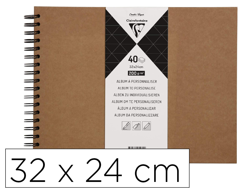 Album a personnaliser clairefontaine couverture rigide reliure integrale noire 27x20cm 40 feuilles 200g coloris kraft