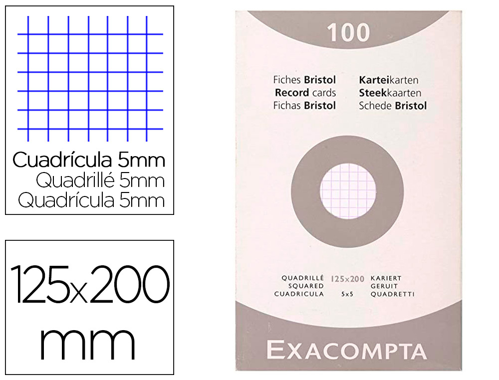 Etui de 100 fiches exacompta bristol blanc quadrille 5x5 uni perforee 125x200mm
