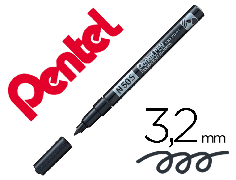 Marqueur pentel n50 permanent pointe ogive 4.3mm encre a solvant indelebile tous supports corps metal noir pack 36 uni