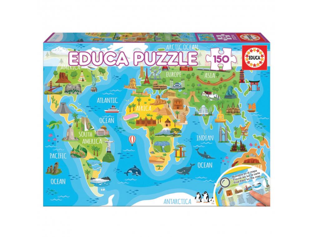 Puzzles cartes du monde djeco tour du monde 200 pieces 1 poster modele et 1 livret