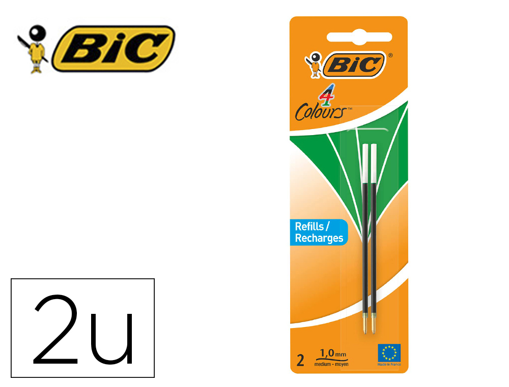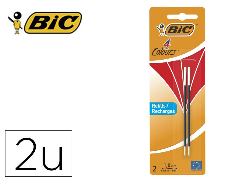 Recharge bic stylo 4 couleurs pointe 1mm trait 0,32mm coloris noir blister 2 unites