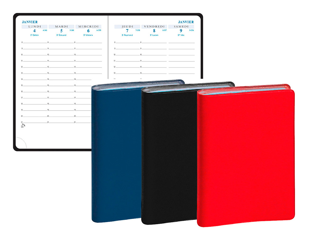 - Mise en Page : Semaine sur deux pages, offrant une vue d'ensemble claire et efficace.
