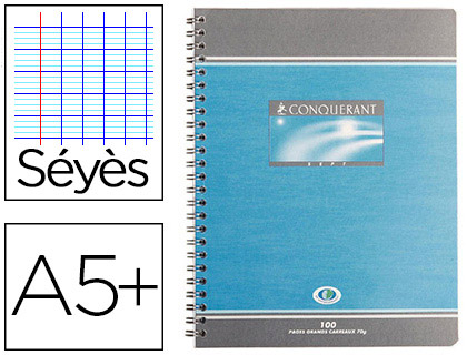 Cahier conquérant sept reliure intégrale couverture offset a5+ 17x22cm 100 pages 70g 5x5mm