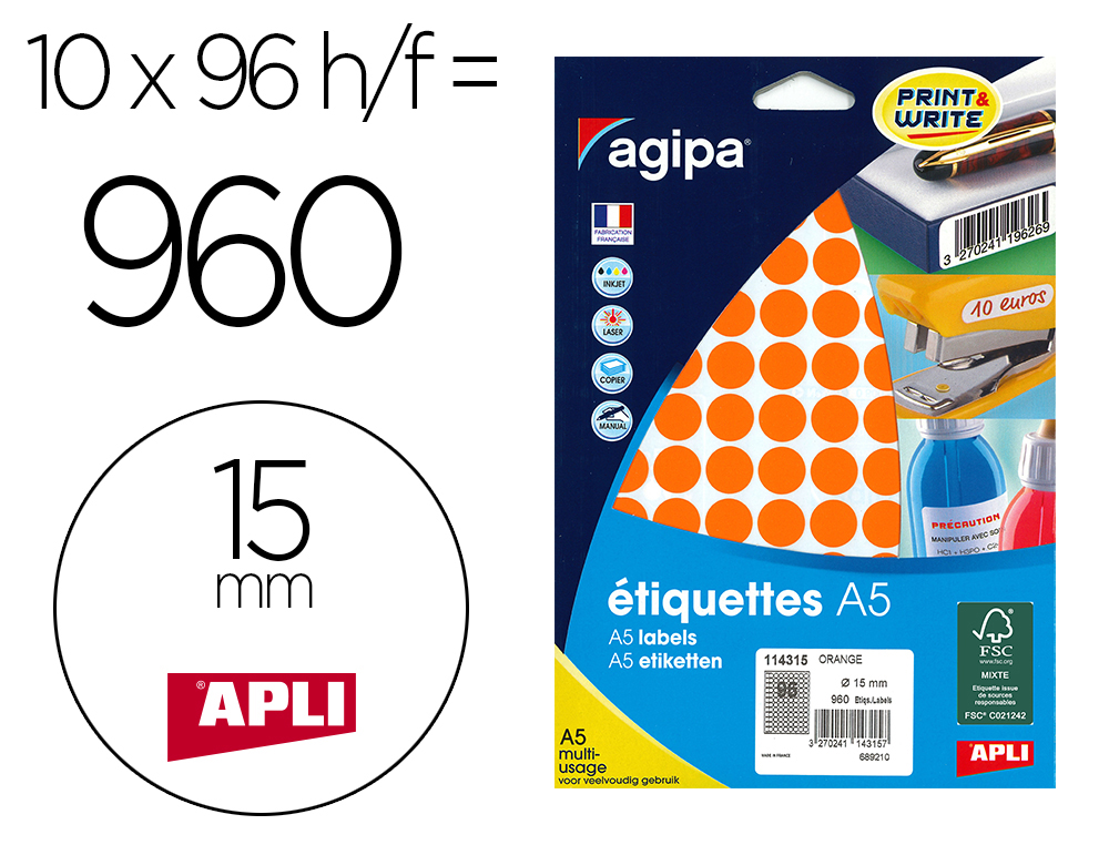 Optez pour l'efficacité et la simplicité avec les pastilles adhésives APLI Agipa. Conçues pour répondre à divers besoins de marquage et d'organisation, ces étiquettes multi-usages sont compatibles avec les imprimantes et les copieurs, facilitant ainsi leur intégration dans vos systèmes de gestion.