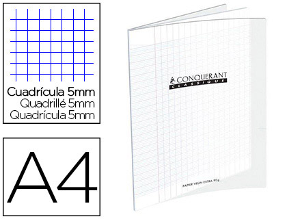 Cahier piqué conquérant classique couverture polypropylène rigide transparente a4+ 24x32cm 96 pages 90g uni incolore