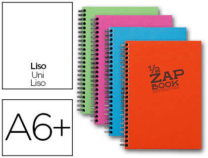 Bloc recyclé clairefontaine zap book reliure intégrale couverture cartonnée format 105x148mm 80f 80g uni 4 coloris