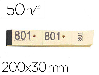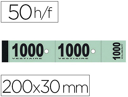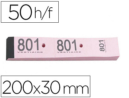 Bloc vestiaire piqué elve 3 coupons perforés détachables numérotés 1/1000 30x200mm 50 feuillets coloris rouge