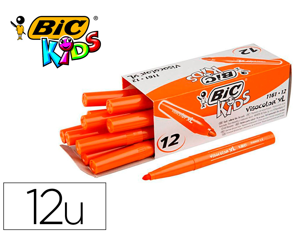 Feutre bic kids visa coloriage pointe fine bloquée ultra-résistante 12 couleurs assorties coffret scolaire 288 unités