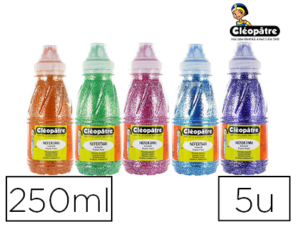 Peinture a l'eau cleopatre nefertari pailletee tous supports flacon 250ml coloris pastel assortis lot 4 unites