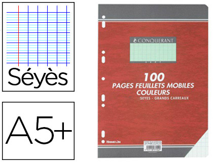 - Règlure : Grands carreaux Seyes agrandis, avec des lignes noires de 2,5 mm et des espaces de 10x10 mm pour une meilleure lisibilité.