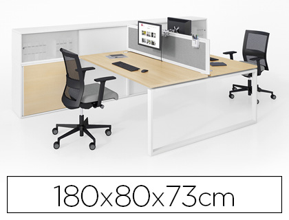 Optimisez votre espace de travail avec cette table de bureau rectangulaire au décor chêne clair, dotée de pieds arche fixes en métal blanc. Avec un plateau mélaminé de 25 mm d'épaisseur, ce meuble allie robustesse et esthétisme pour un poste individuel ou partagé parfaitement adapté à un usage professionnel ou à domicile.