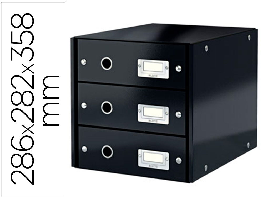Boîte classement leitz click&store 3 tiroirs carton fort 286x282x358mm porte-étiquette oeillet préhension coloris blanc