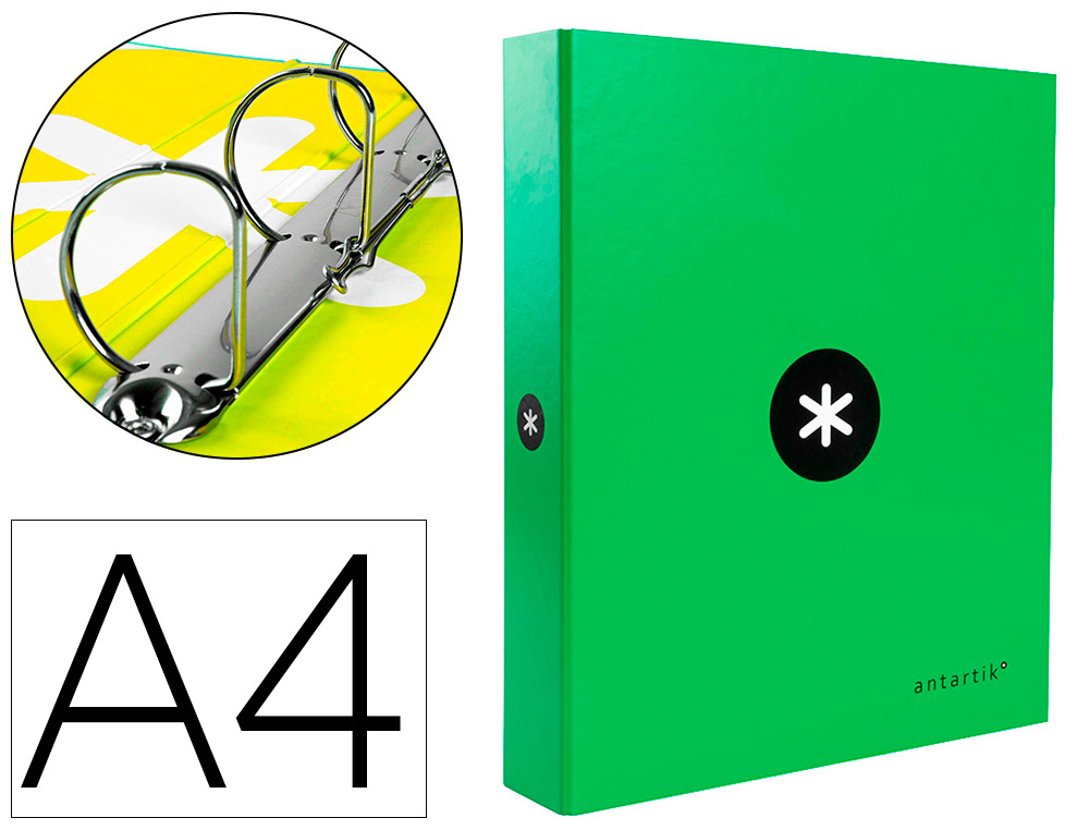Classeur liderpapel 4 anneaux ronds 40mm a4 carton rembordé pvc coloris vert pistache