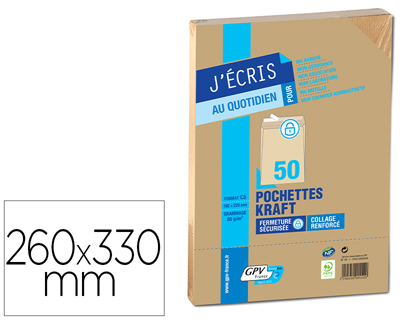 Pochette gpv kraft brun recycle 90g b5 176x250mm autocollante boite 500 unites