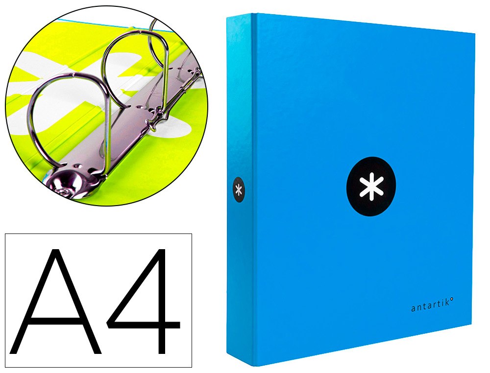 Classeur antartik 4 anneaux ronds 40mm a4 carton remborde feuillets mobiles quadrillage 5mm coloris bleu