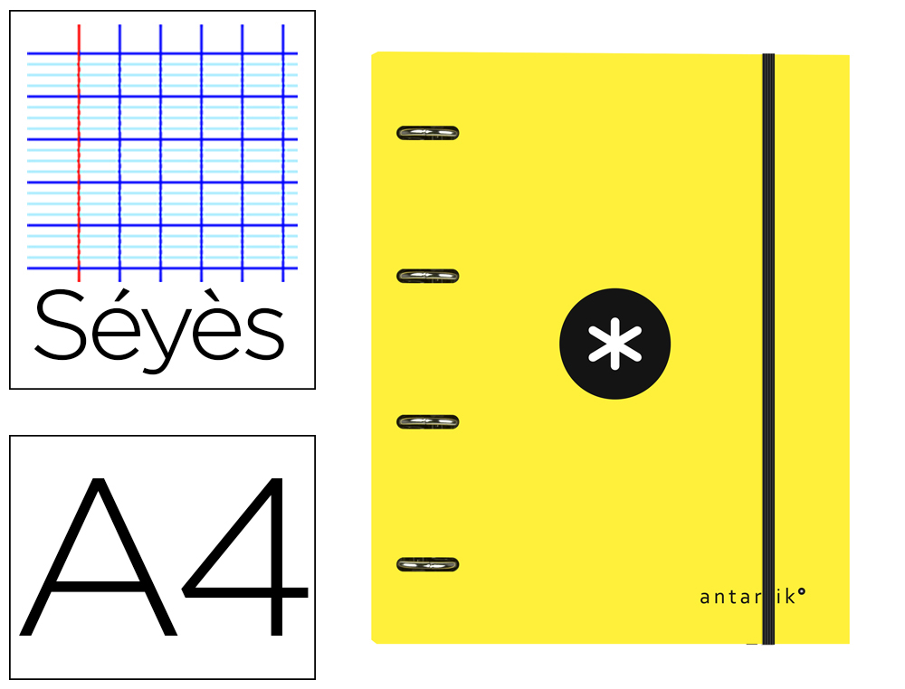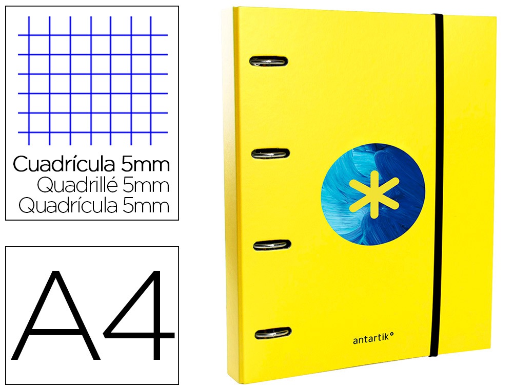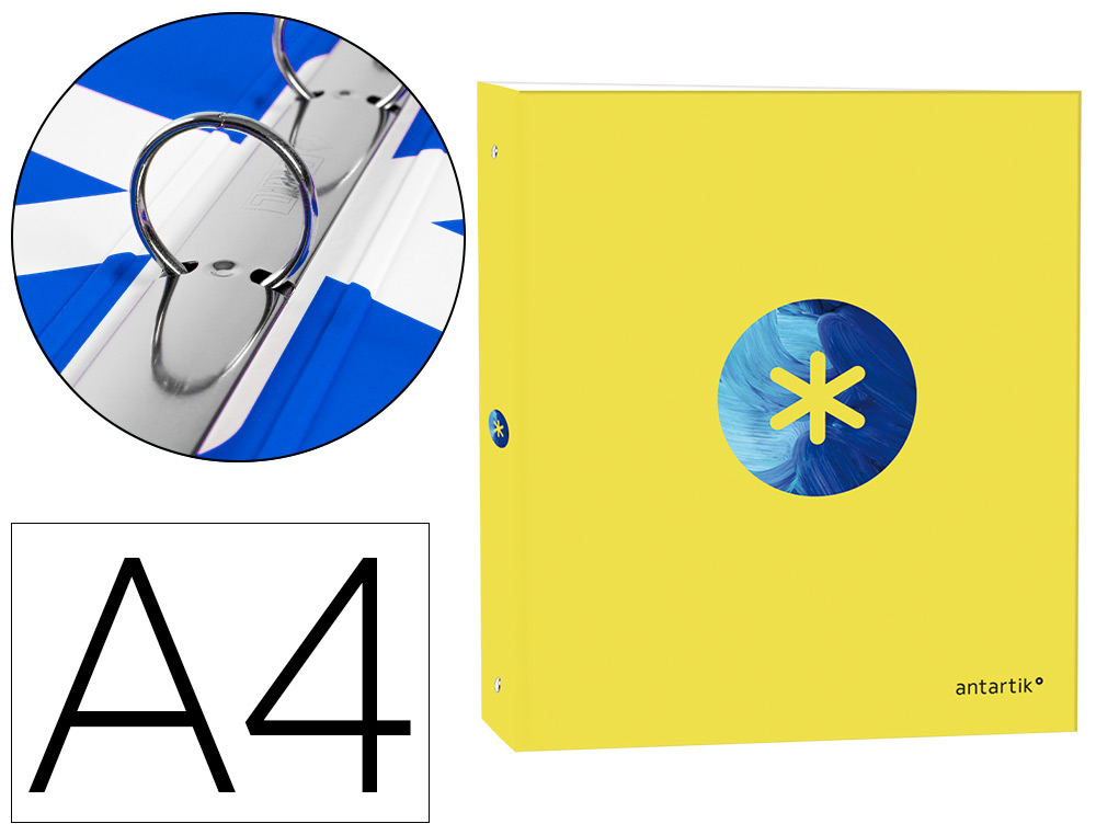 Classeur antartik 4 anneaux ronds 40mm a4 carton remborde feuillets mobiles q5x5 colorisjaune